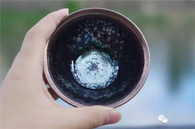 「金縷鷓鴣斑」賞析:建盞的斑紋從析出晶體到豐富的色彩需要一個(gè)過(guò)程,當(dāng)色彩接近到最佳的時(shí)候盞的底部會(huì)形成一個(gè)如同黑洞一樣的盞眼。在燒制過(guò)程中如果控制不到位黑洞就會(huì)把色彩吞噬,整只盞變得暗淡無(wú)光!