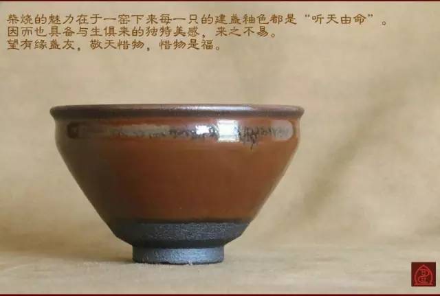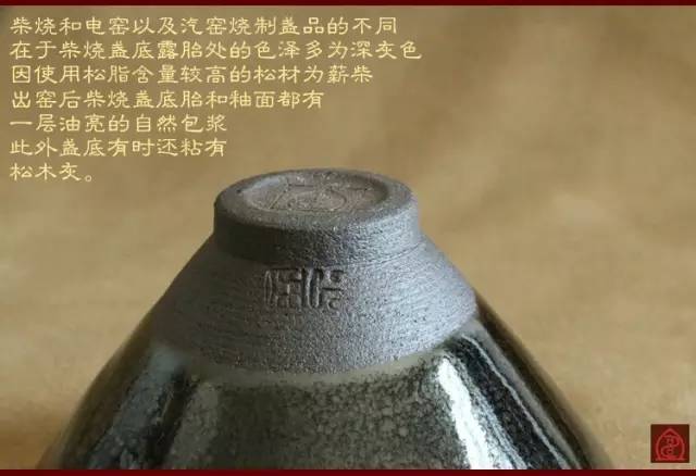 即便電窯可以恒溫控制,燒出的建盞顏色也常常有很大變化。而柴燒盞更是,柴燒松木燃燒所產(chǎn)生的灰燼和火焰直接竄入窯內(nèi),在坯體上產(chǎn)生自然落灰的現(xiàn)象。經(jīng)長(zhǎng)時(shí)間的高溫融合成自然的釉面,其色澤溫潤(rùn),層次含蓄豐富,盞底質(zhì)地粗獷,與電窯的銀油滴或黃兔毫還是很不同的。建議有條件的情況下,進(jìn)行實(shí)物對(duì)比。