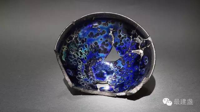 2009年上半年,杭州市上城區(qū)遺址出土,約四分之一部分殘佚,但圈足保存完好,原本的器形也相當(dāng)清楚,器內(nèi)壁的曜變斑紋展現(xiàn)夢(mèng)幻般的光彩。