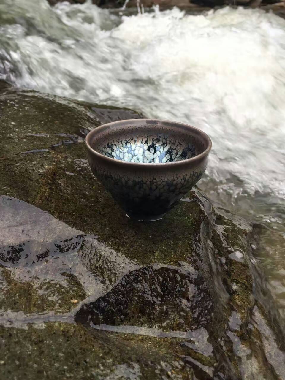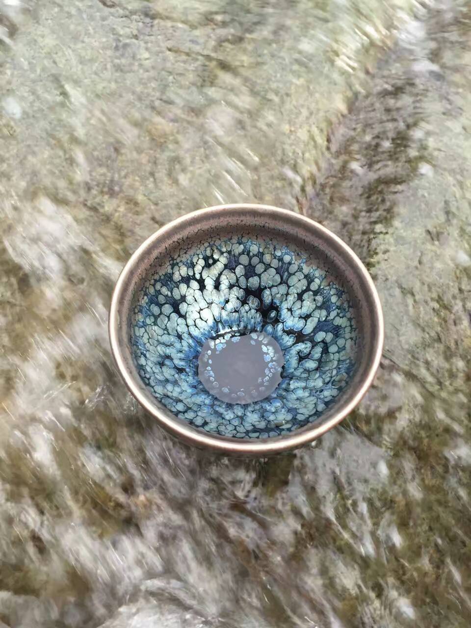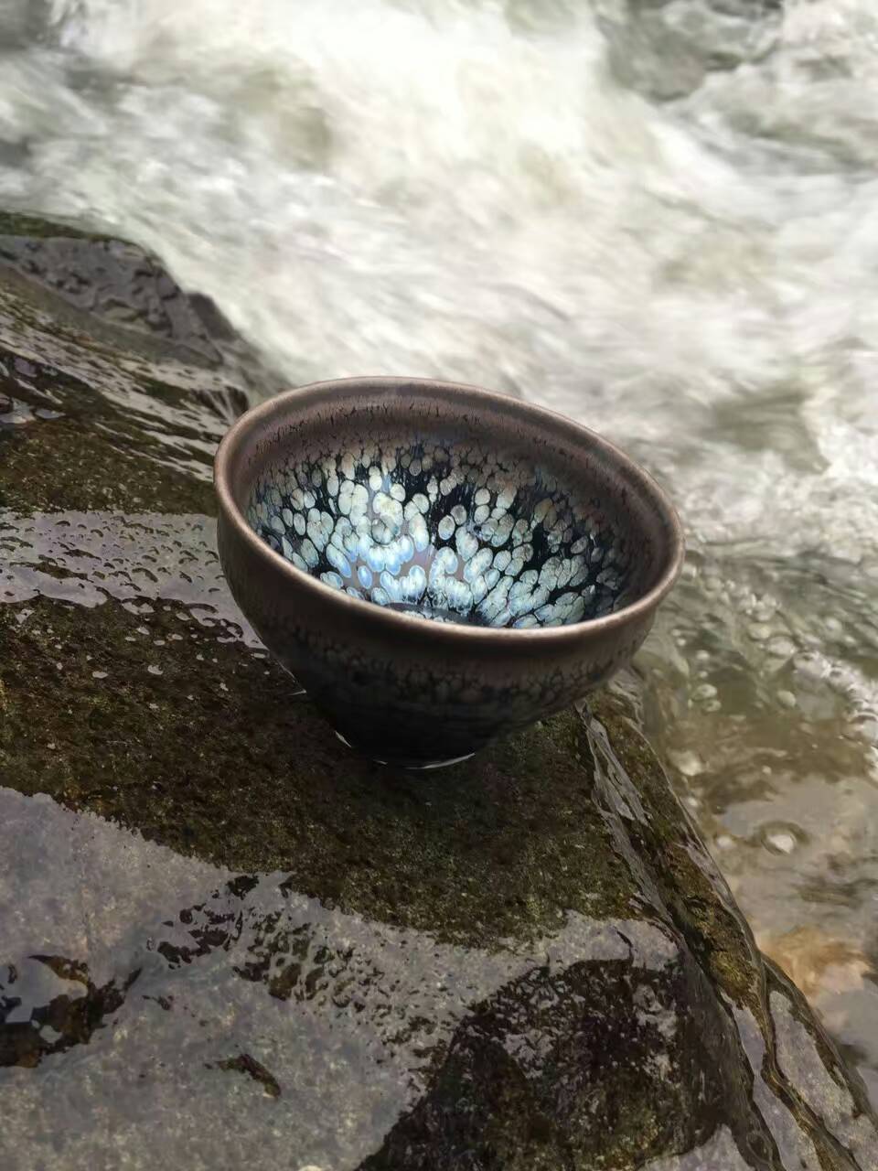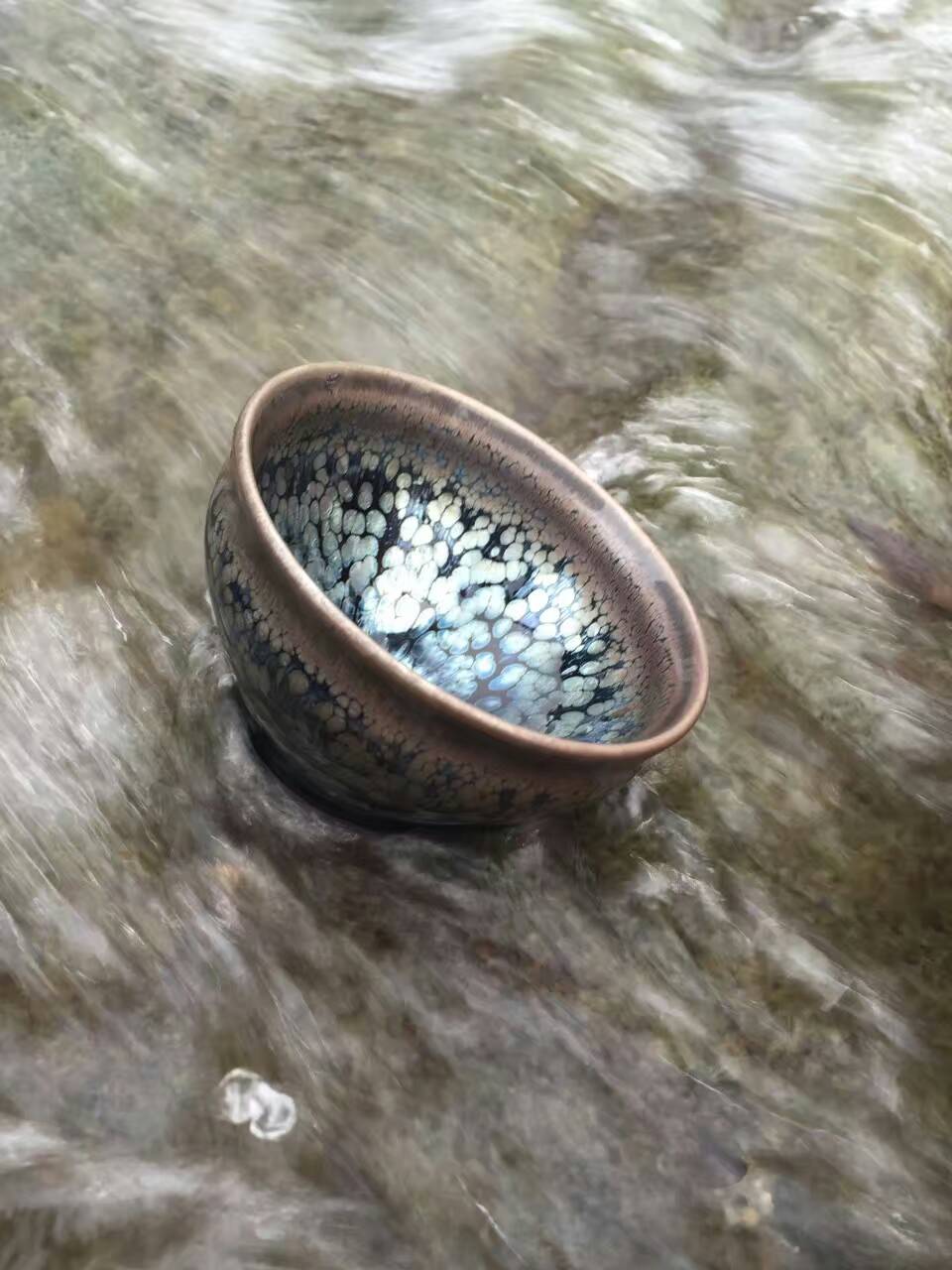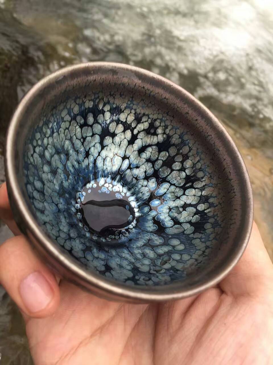馮勇作品藍(lán)釉銀油滴盞飛流直下三千尺疑是銀河落九天