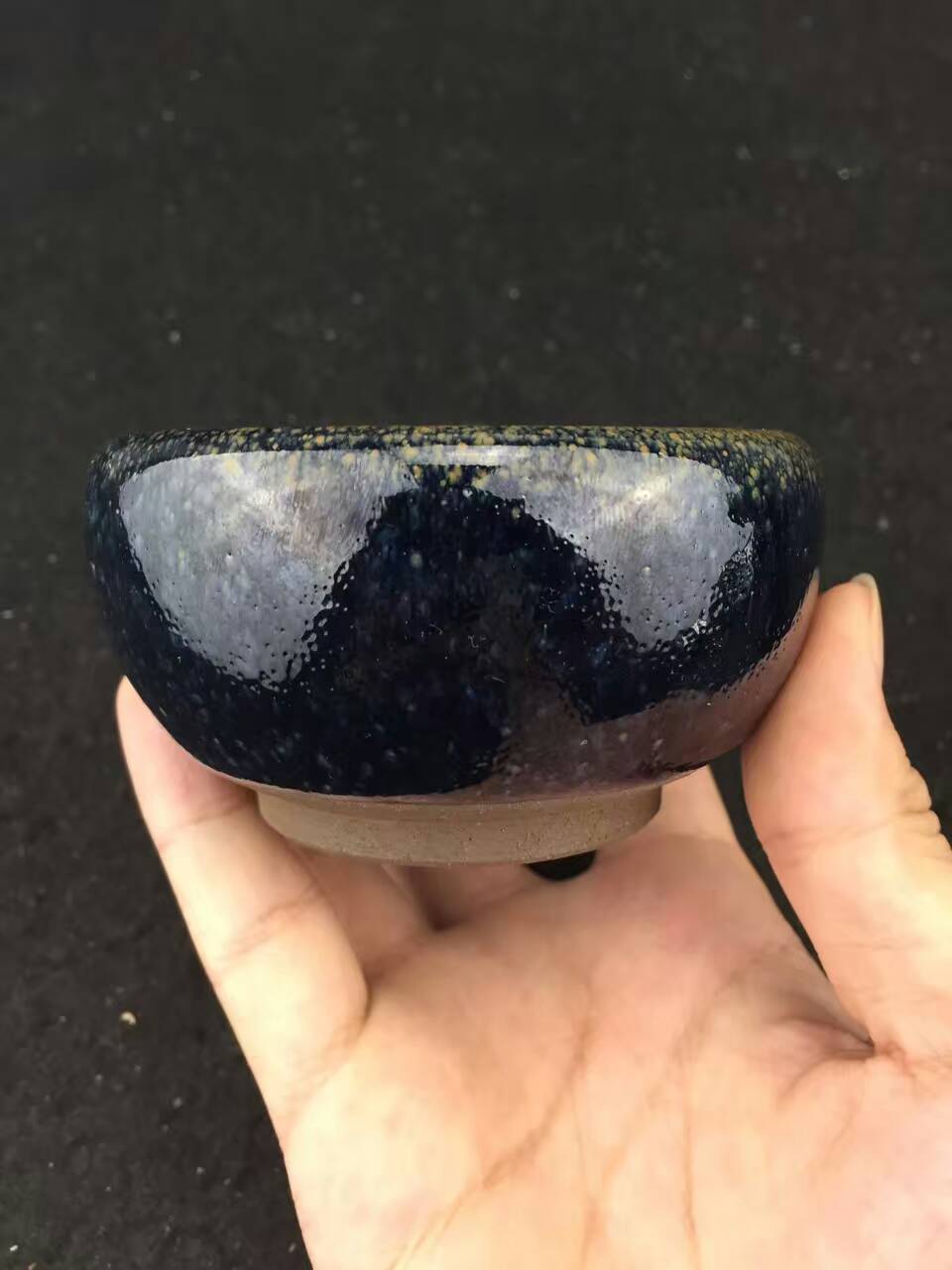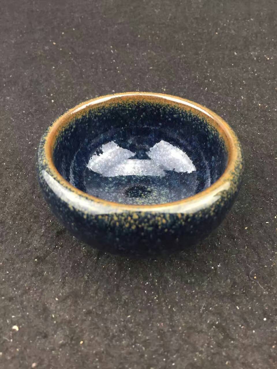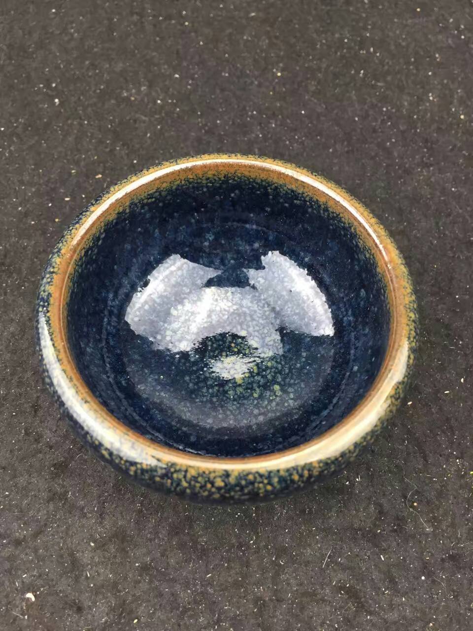 清風(fēng)建盞陳乃文師傅油燈型建盞黑釉銀白油滴盞