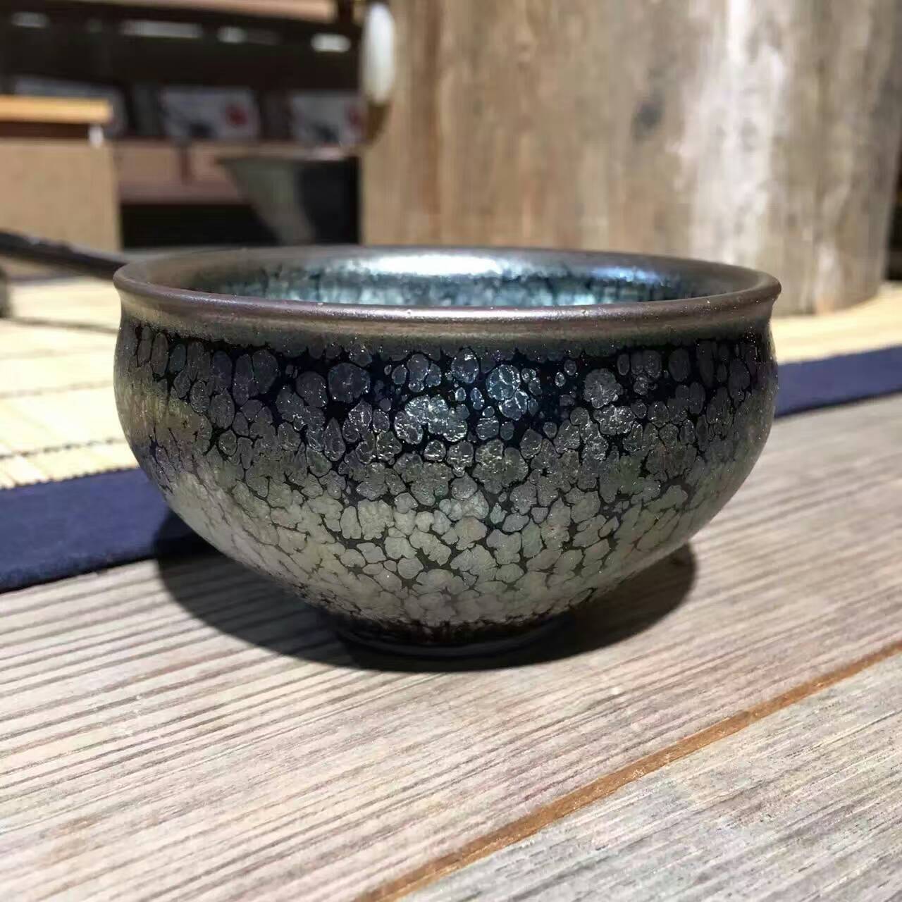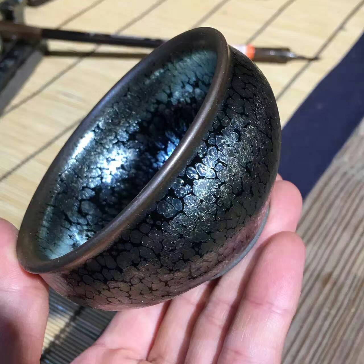 李盞李昌海彩華紫金鷓鴣斑建盞口徑8.3附養(yǎng)盞效果