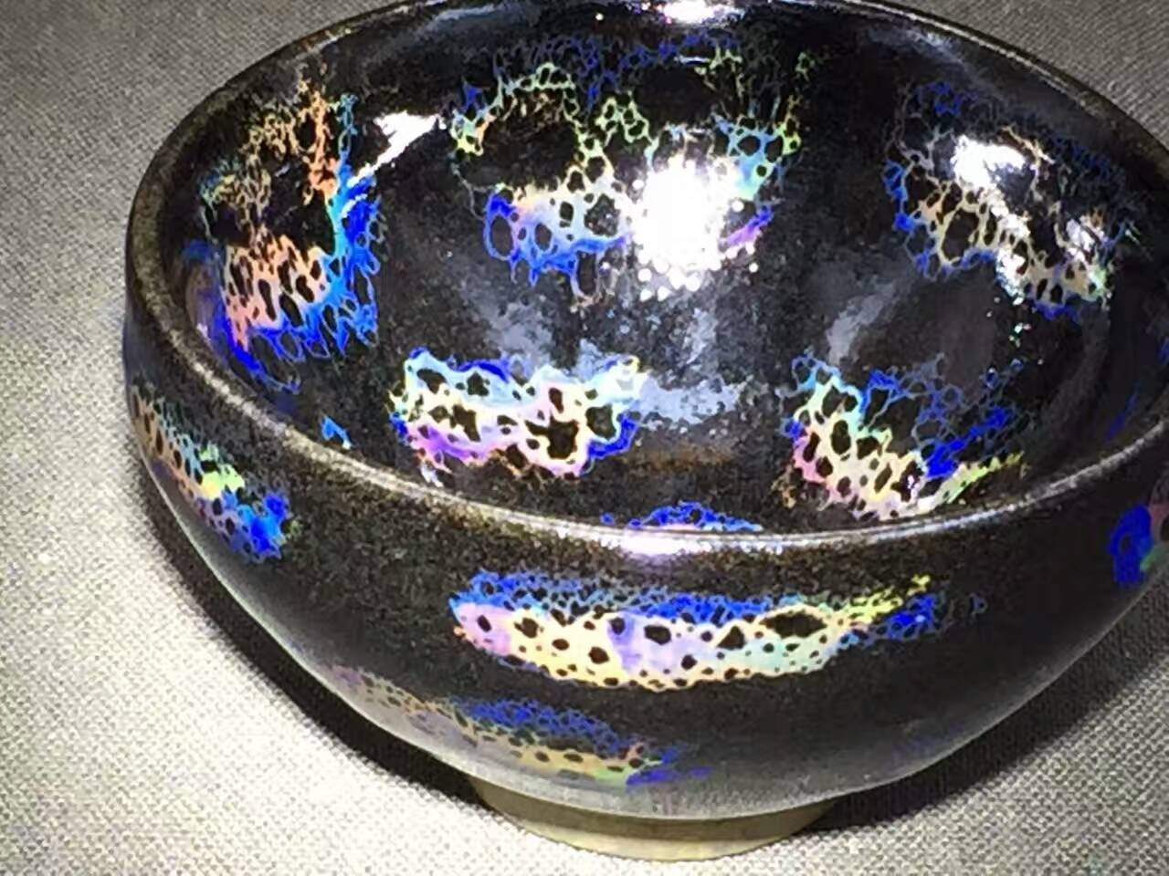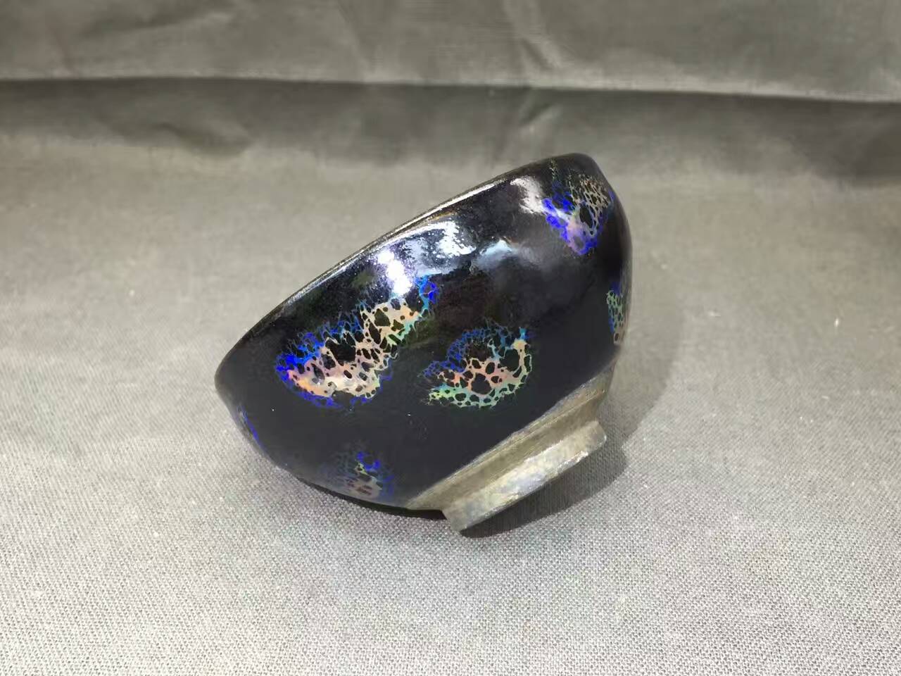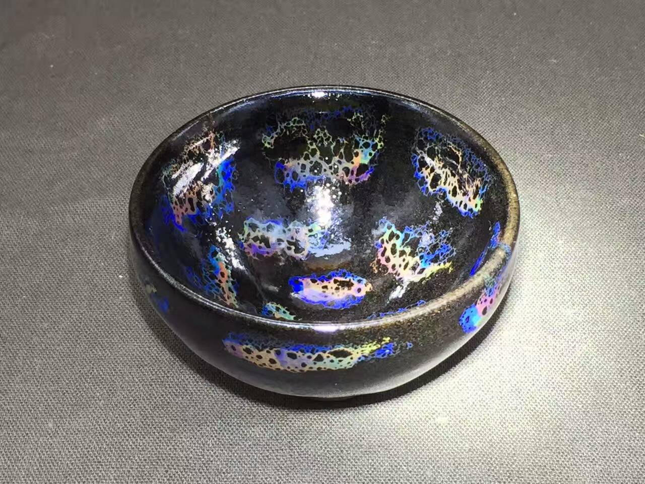 宋代建窯青藍(lán)兔毫斗笠盞,釉色一流,喝茶利器