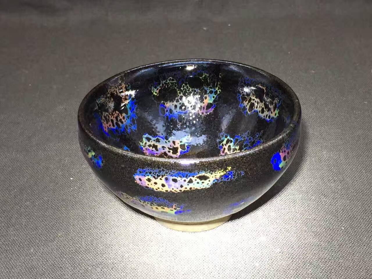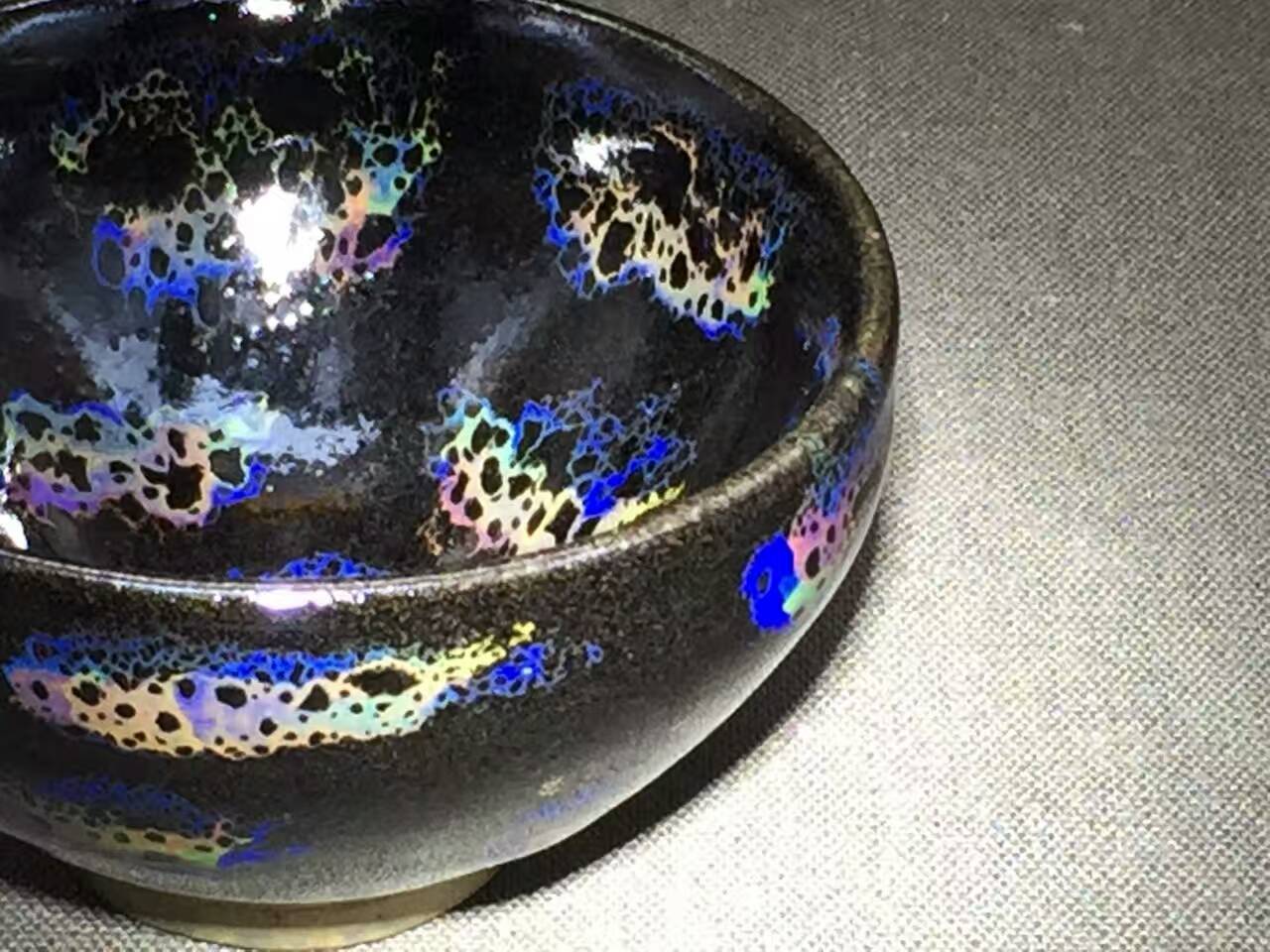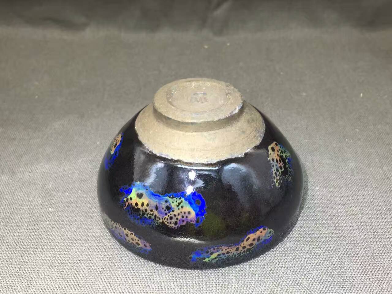 宋代建窯青藍(lán)兔毫斗笠盞,釉色一流,喝茶利器