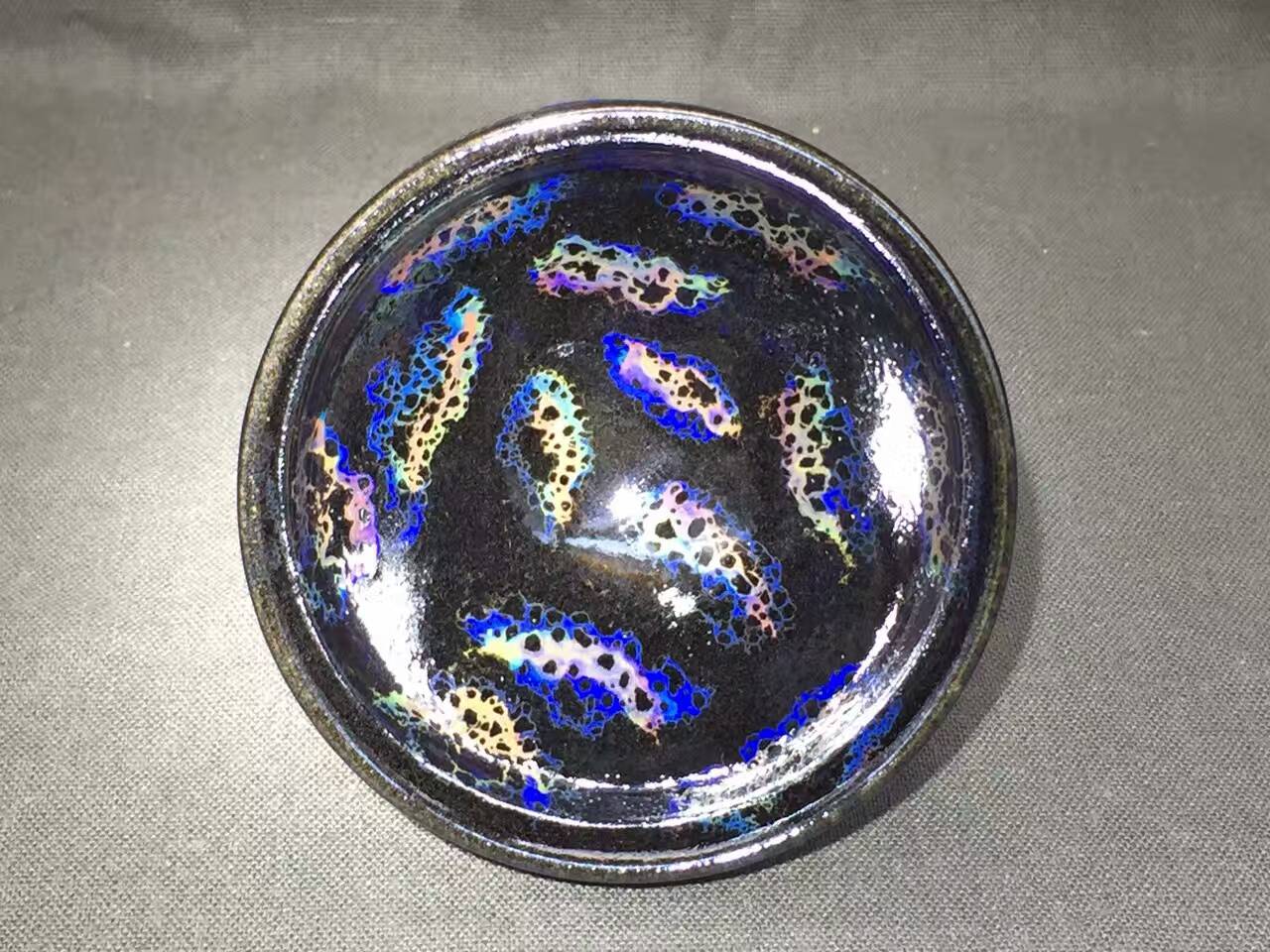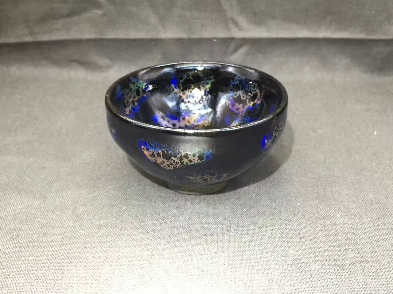 蔡炳昆窯變斑紋束口盞口徑8.5公分高5公分