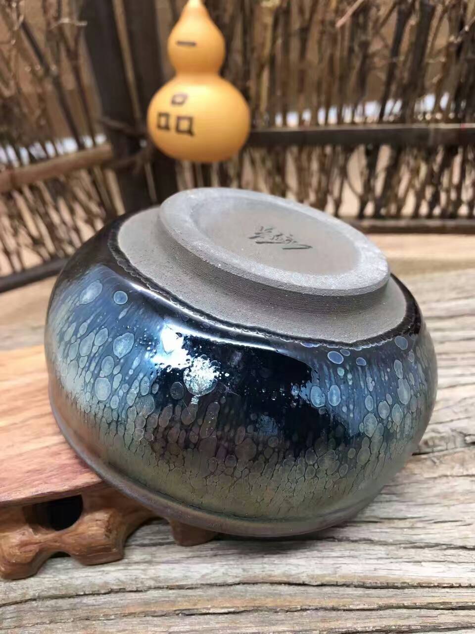 吳立主師傅知名老藝人精品油滴禪定建盞,口徑9cm高4.5cm