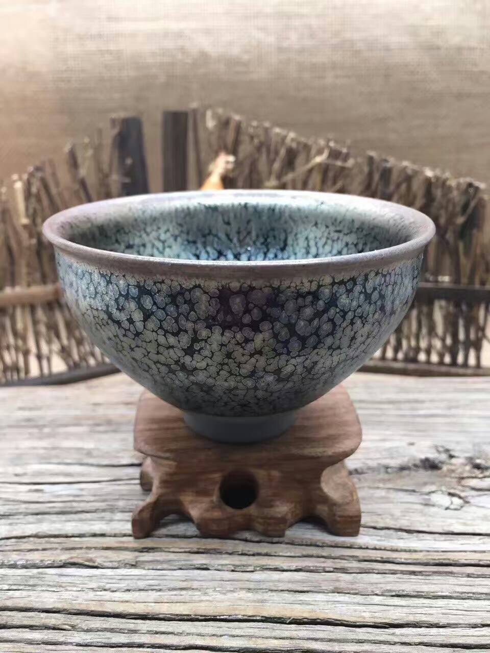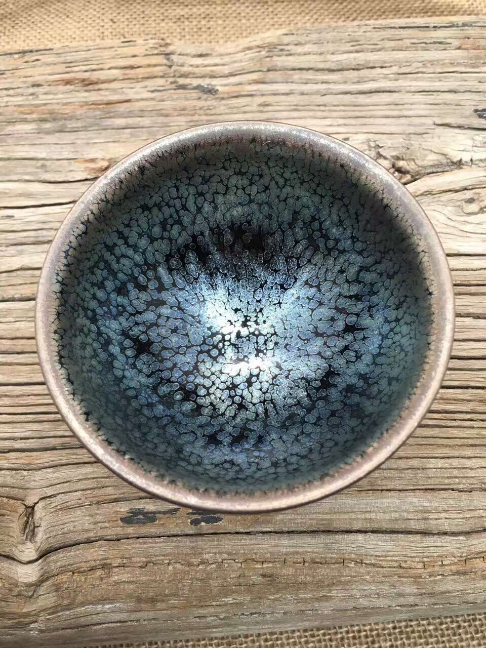 劉學(xué)財(cái)師傅精品滿天星藍(lán)油滴建盞,口徑9.2cm高5.6cm 贊 0 賞 分享 鑒別建盞、了解作品收藏空間、價(jià)格趨勢(shì),可加編輯微信:guanfu2011,暗號(hào)“作品”