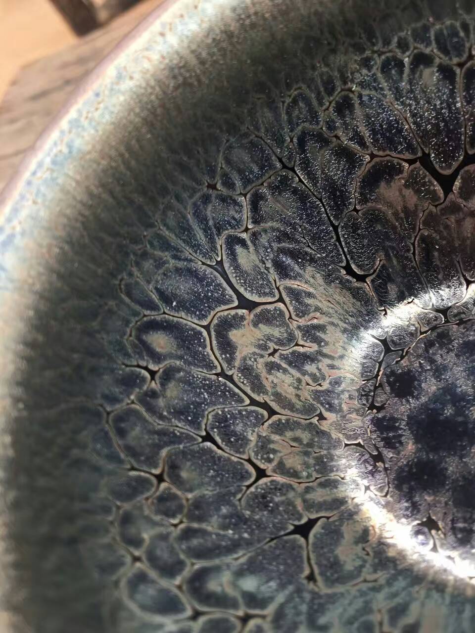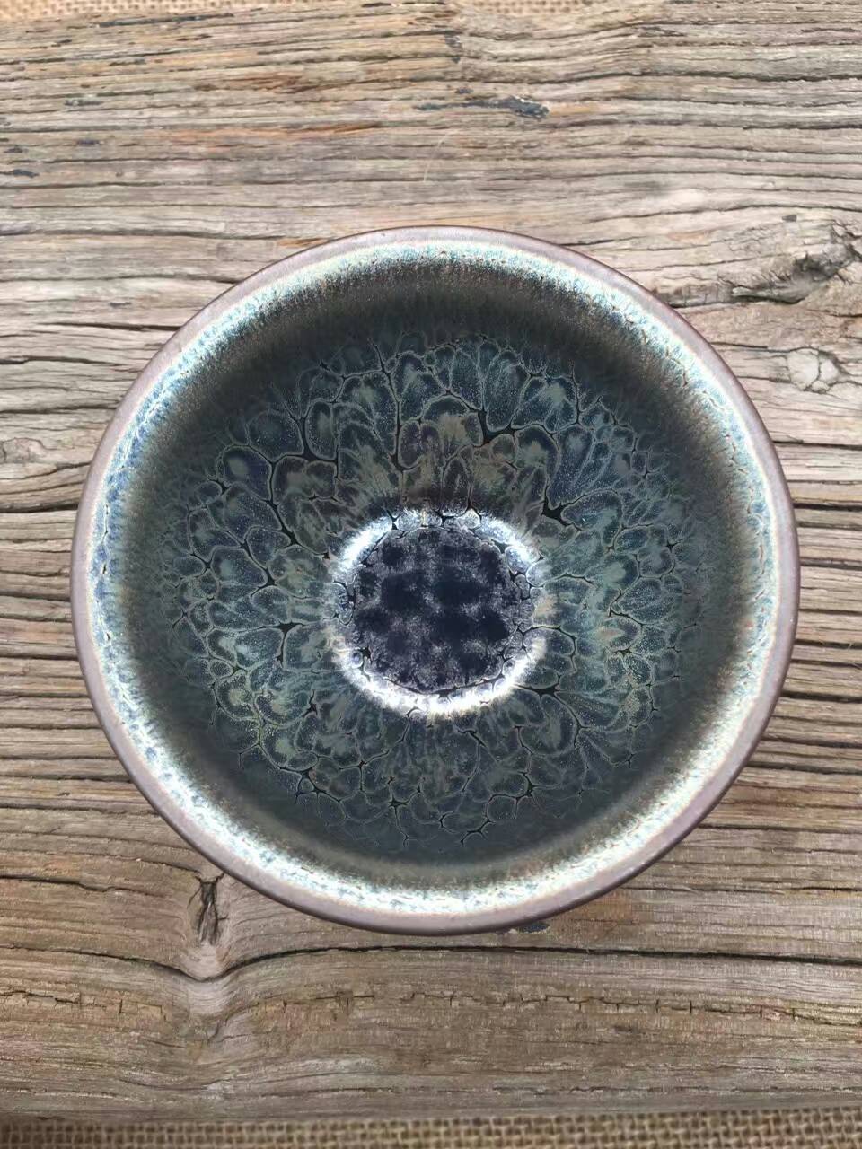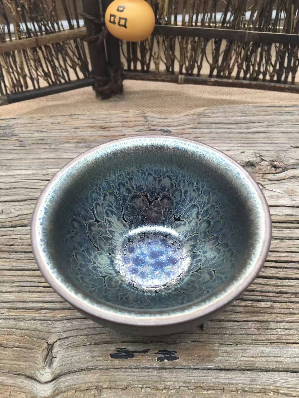 安華建盞,精品孔雀藍油滴盞口徑9高5.2cm