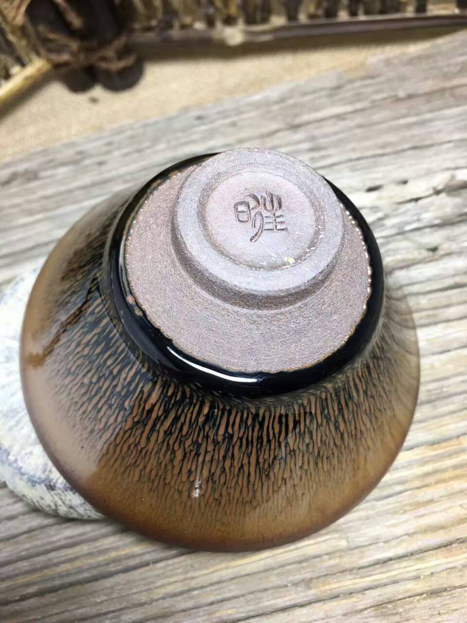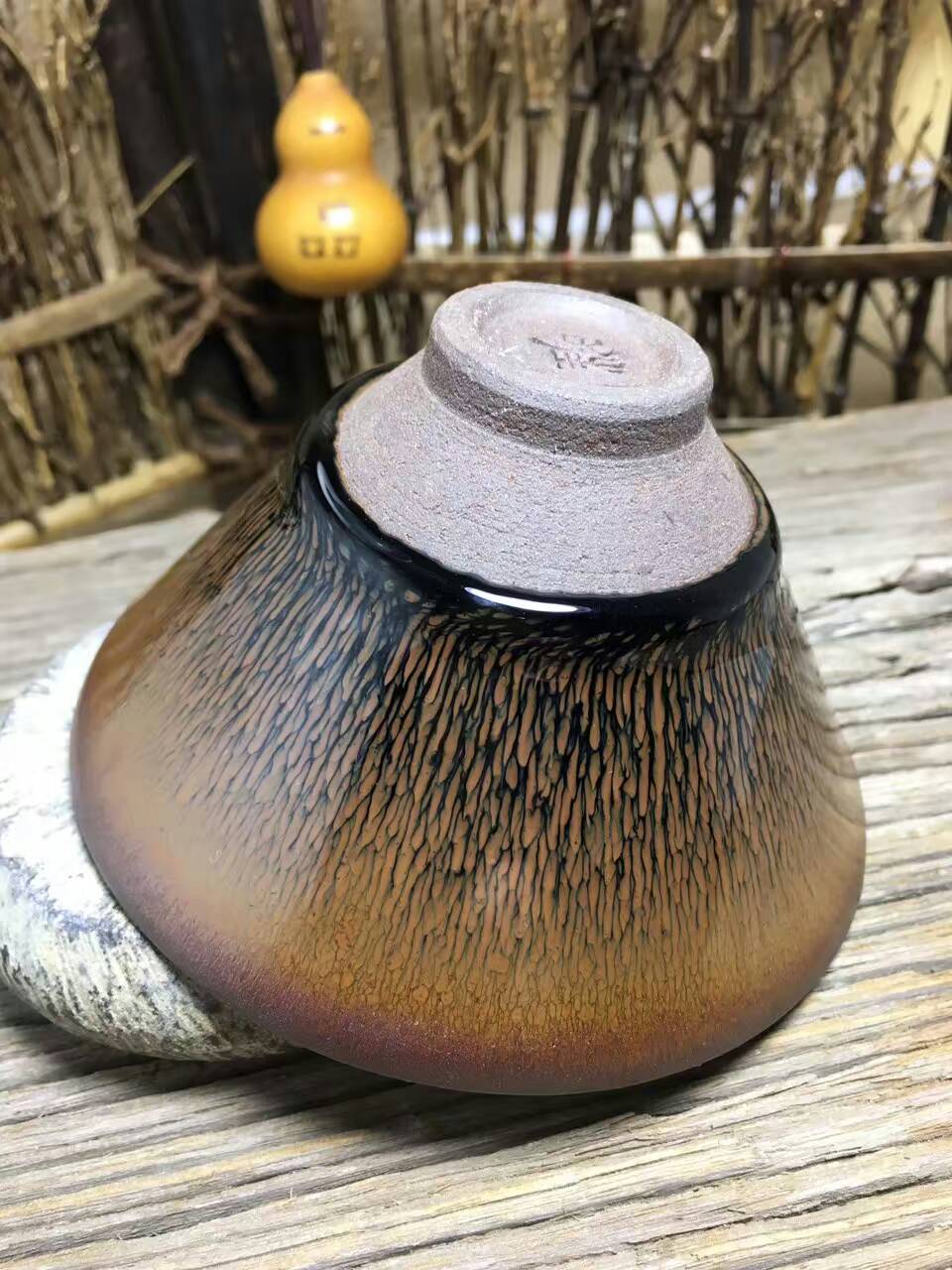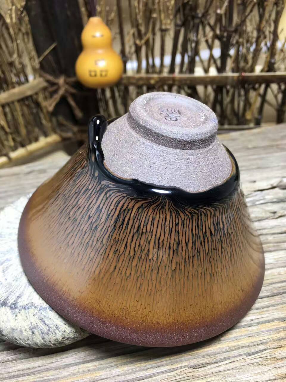 葉禮旺兔毫建盞大師精品兔毫斗笠盞口徑10高5.5cm