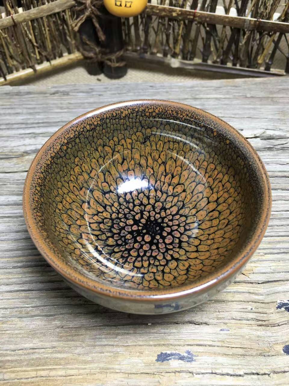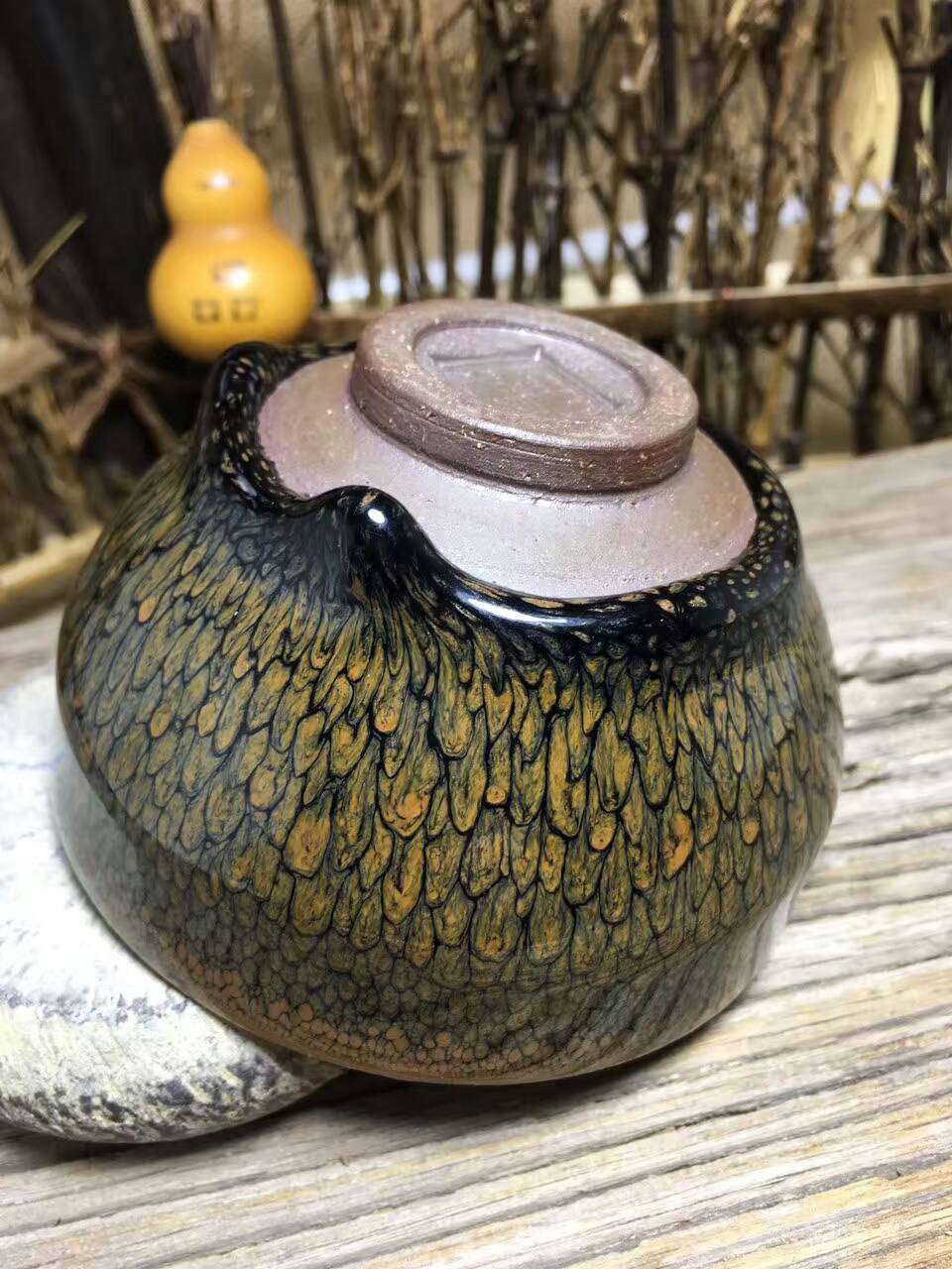 陳其富高級(jí)工藝美術(shù)師陳大鵬之子精品黃鷓鴣斑盞口徑9高5.3全手工拉胚經(jīng)典釉淚 贊 1 賞 分享 鑒別建盞、了解作品收藏空間、價(jià)格趨勢(shì),可加編輯微信:guanfu2011,暗號(hào)“作品”