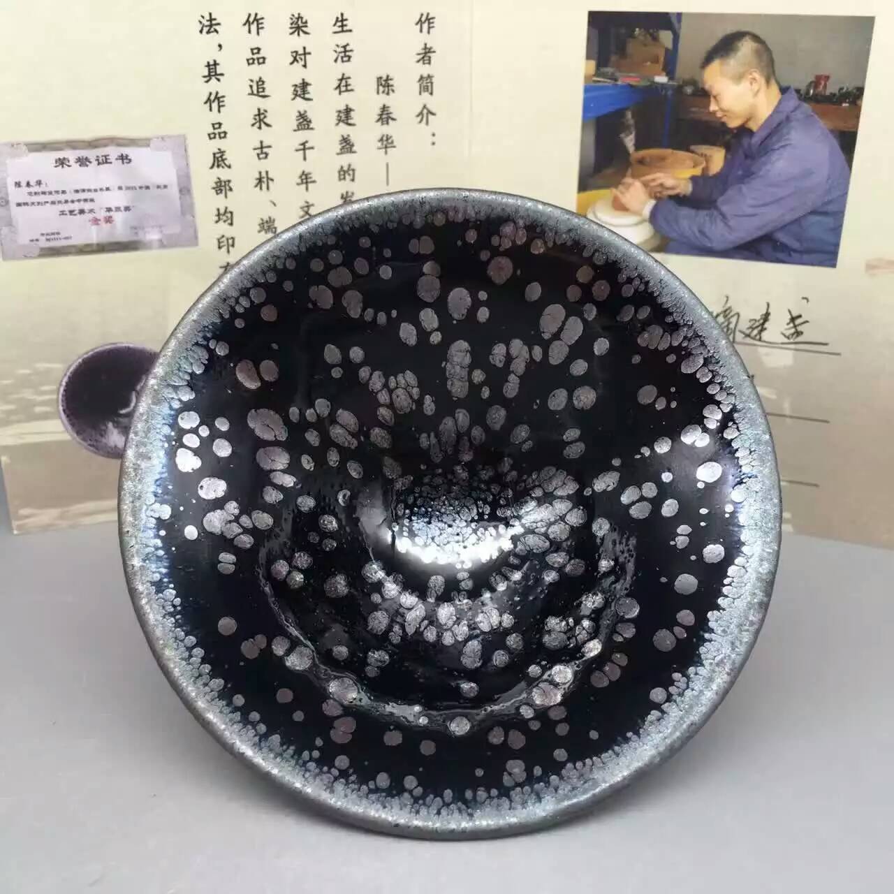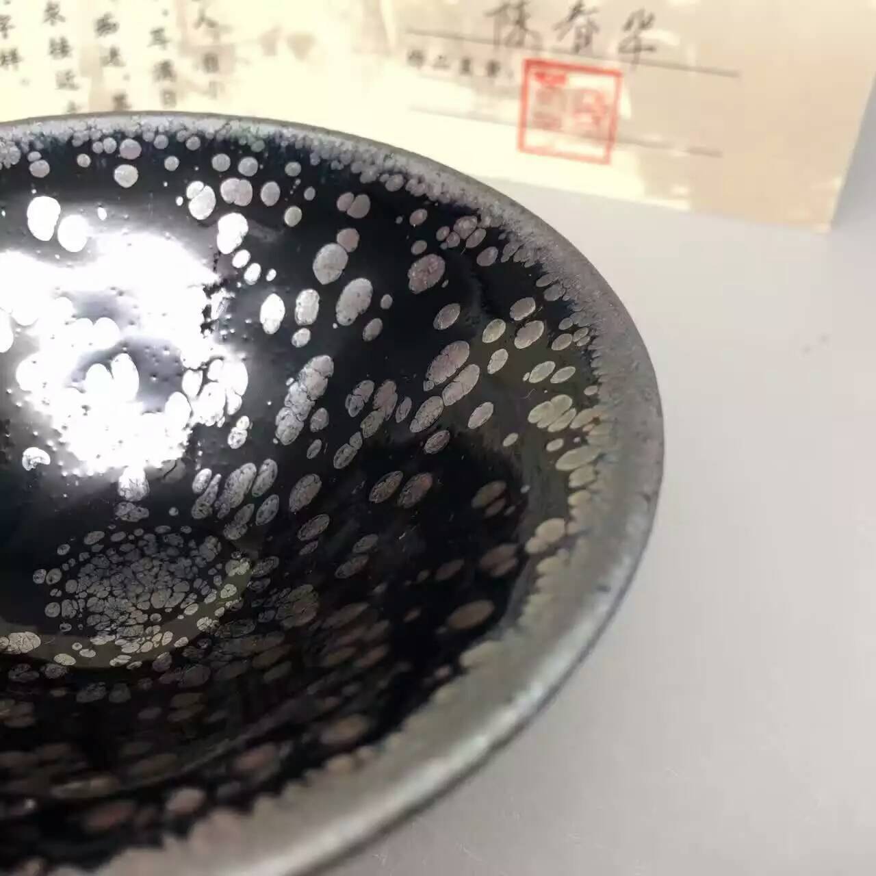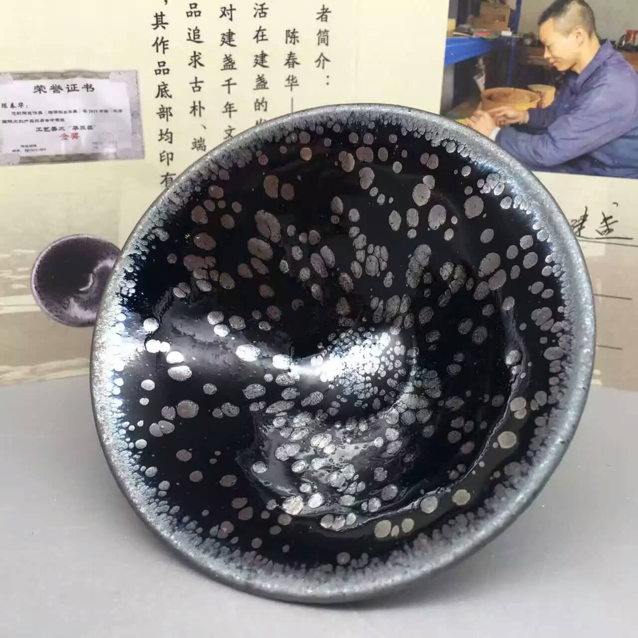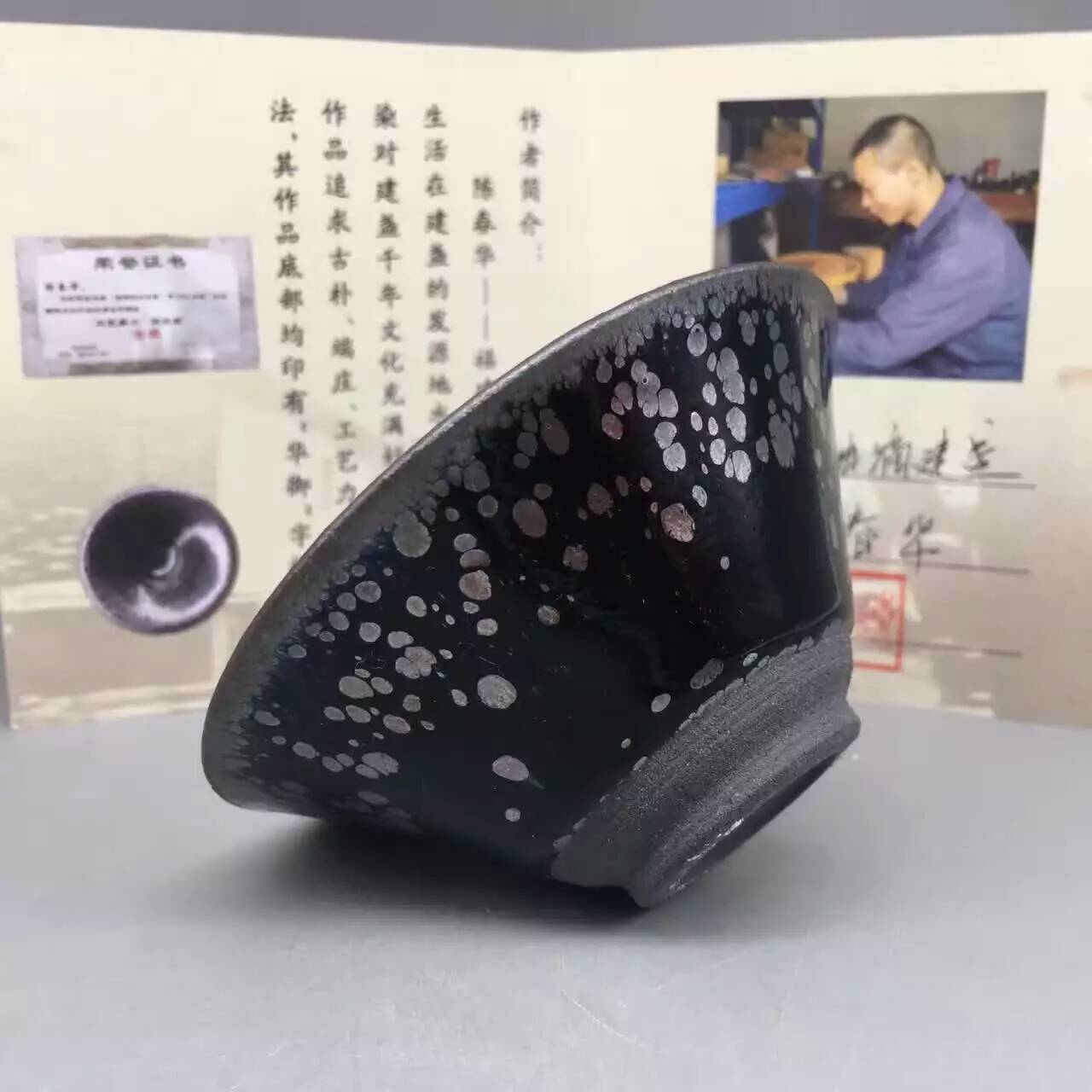 華御陳春華老師精品傳統(tǒng)斗笠油滴盞口徑8.8高3.8