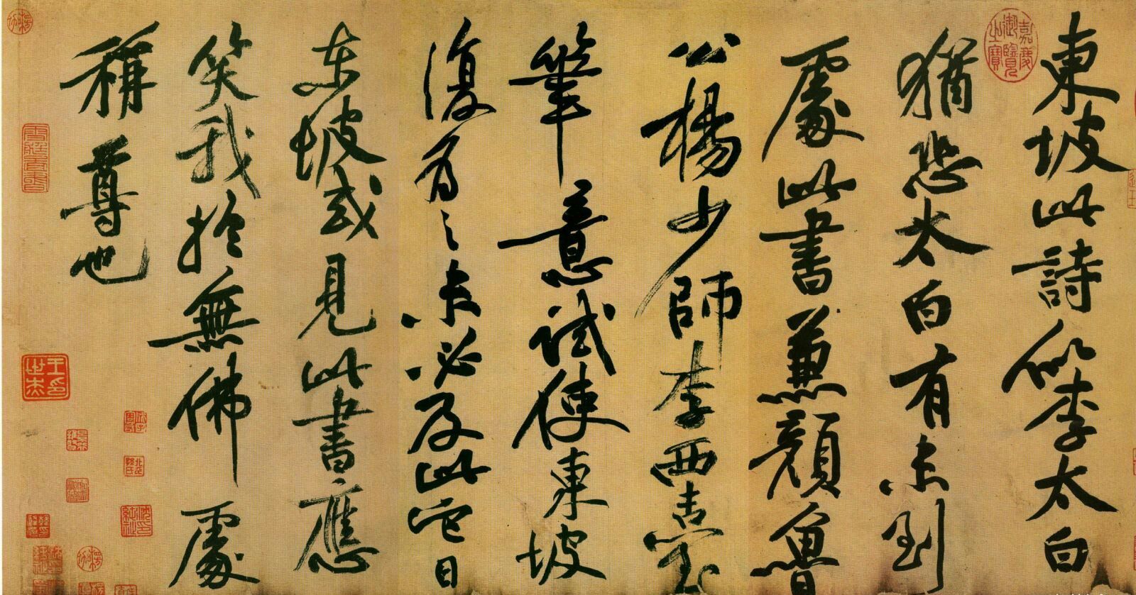 宋的書法我會(huì)選蘇東坡的寒食帖。他四十三歲因?yàn)跖_(tái)詩獄被抓,寫了一首絕命詩,請(qǐng)獄卒帶給弟弟,經(jīng)歐陽修等極力搶救,才下放黃州。黃州時(shí)期是蘇東坡寫赤壁賦、大江東去、念奴嬌、寒食帖的年代,唯一留下的手稿是寒食帖。