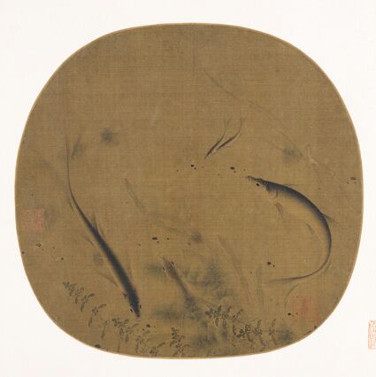 群魚戲藻圖頁 宋,紈扇頁,絹本