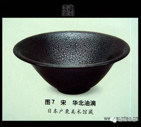 《收藏家》2005年發(fā)表李達(dá)寫的《宋代油滴茶盞鑒賞》一文,文中詳細(xì)介紹了建窯油滴和華北油滴(圖7)的區(qū)別,并對兩種油滴燒制難度以及審美問題作了初步討論。文中提到,判斷一件瓷器的燒制難度,可以從坯、釉、窯溫和窯中氣氛這四個(gè)制瓷因素的制約程度考慮,這就需要了解制瓷過程中四個(gè)因素對產(chǎn)品的影響有多大。有些瓷器的釉色,雖然配方很獨(dú)特,但燒時(shí)不易出現(xiàn)缺陷,成品率就高,可以大量生產(chǎn)。還有些瓷器,雖然燒成溫度很高并需要還原氣氛,但溫度和氣氛的增減對產(chǎn)品影響不大,其燒制難度也不大。