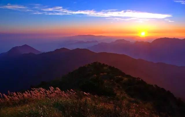 不知何時(shí),翻騰的云海被暮色染上了一抹朱砂紅,羞紅了山澗的一抹深色,羞紅了山巔的一雙笑靨,繁星高懸的夜,留下四下起伏的山影同我作伴,我靜靜的思索,唯愿攜一縷虔誠的心,等待升起金色的黎明。