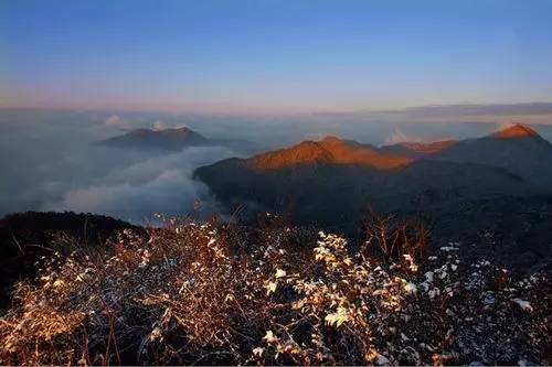 山巒的尖頂像是同云霧玩著捉迷藏的游戲,一時(shí)浸沒在茫茫白霧之中,沒了半分蹤影。一時(shí),又在流動(dòng)的云海中,深處腦袋,沐浴著暖陽的溫暖。我悄然靜立著,看空谷的遠(yuǎn)風(fēng),將飄動(dòng)的云彩打散,再游離成新的花樣,默然欣喜的瞬間,一絲超塵脫俗裝點(diǎn)了心頭。