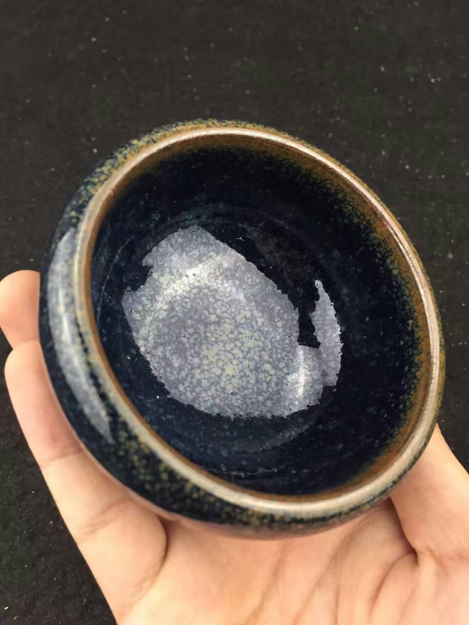 清風(fēng)建盞陳乃文師傅油燈型建盞黑釉銀白油滴盞
