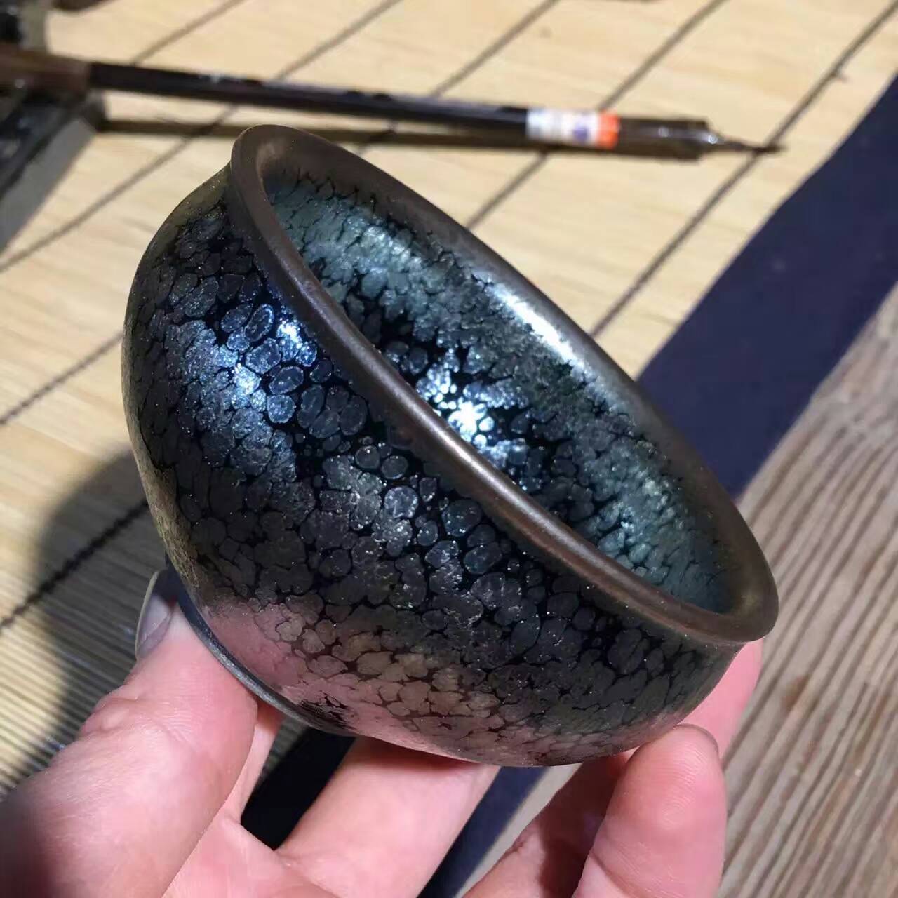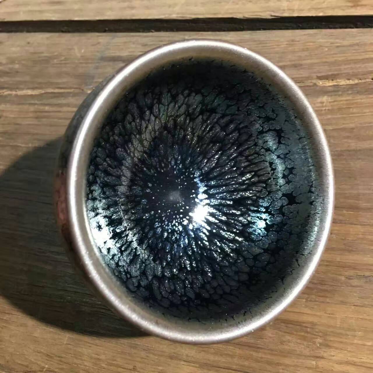 李盞李昌海彩華紫金鷓鴣斑建盞口徑8.3附養(yǎng)盞效果