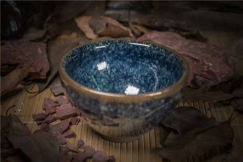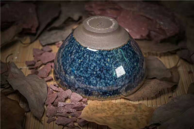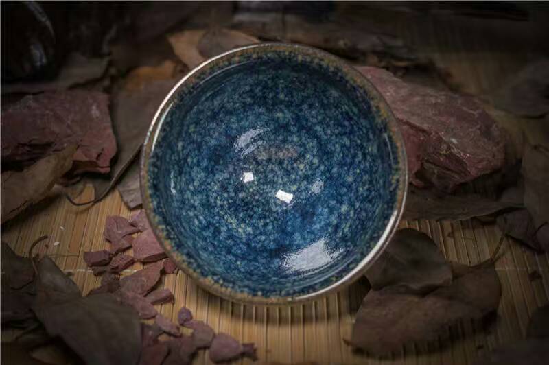 云谷山陳旭冰藍(lán)天目束口盞,尺寸9×5.5公分