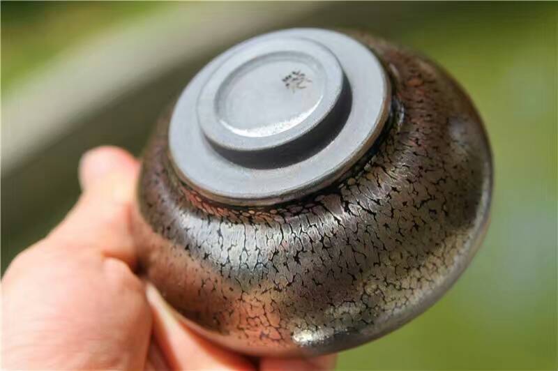 暨志平“焰”字款束口油滴盞口徑8高4.2公分