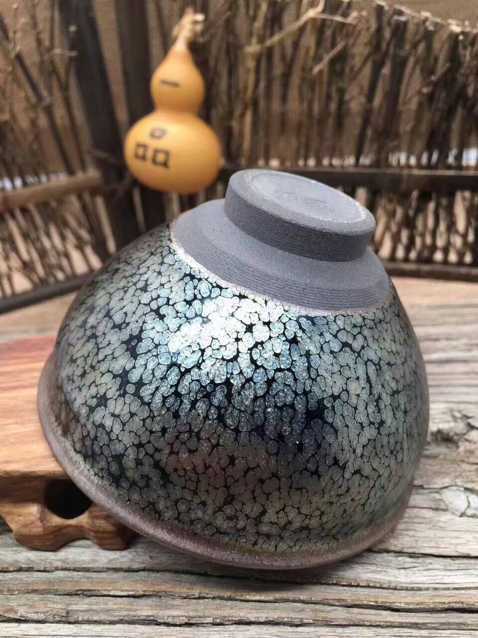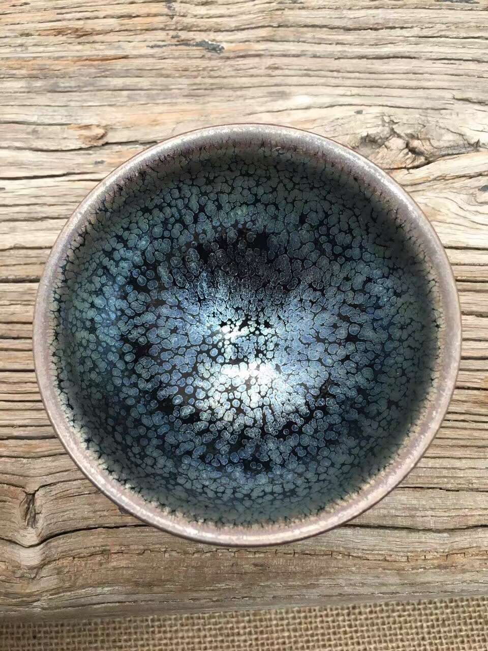 劉學(xué)財(cái)師傅精品滿天星藍(lán)油滴建盞,口徑9.2cm高5.6cm 贊 0 賞 分享 鑒別建盞、了解作品收藏空間、價(jià)格趨勢(shì),可加編輯微信:guanfu2011,暗號(hào)“作品”