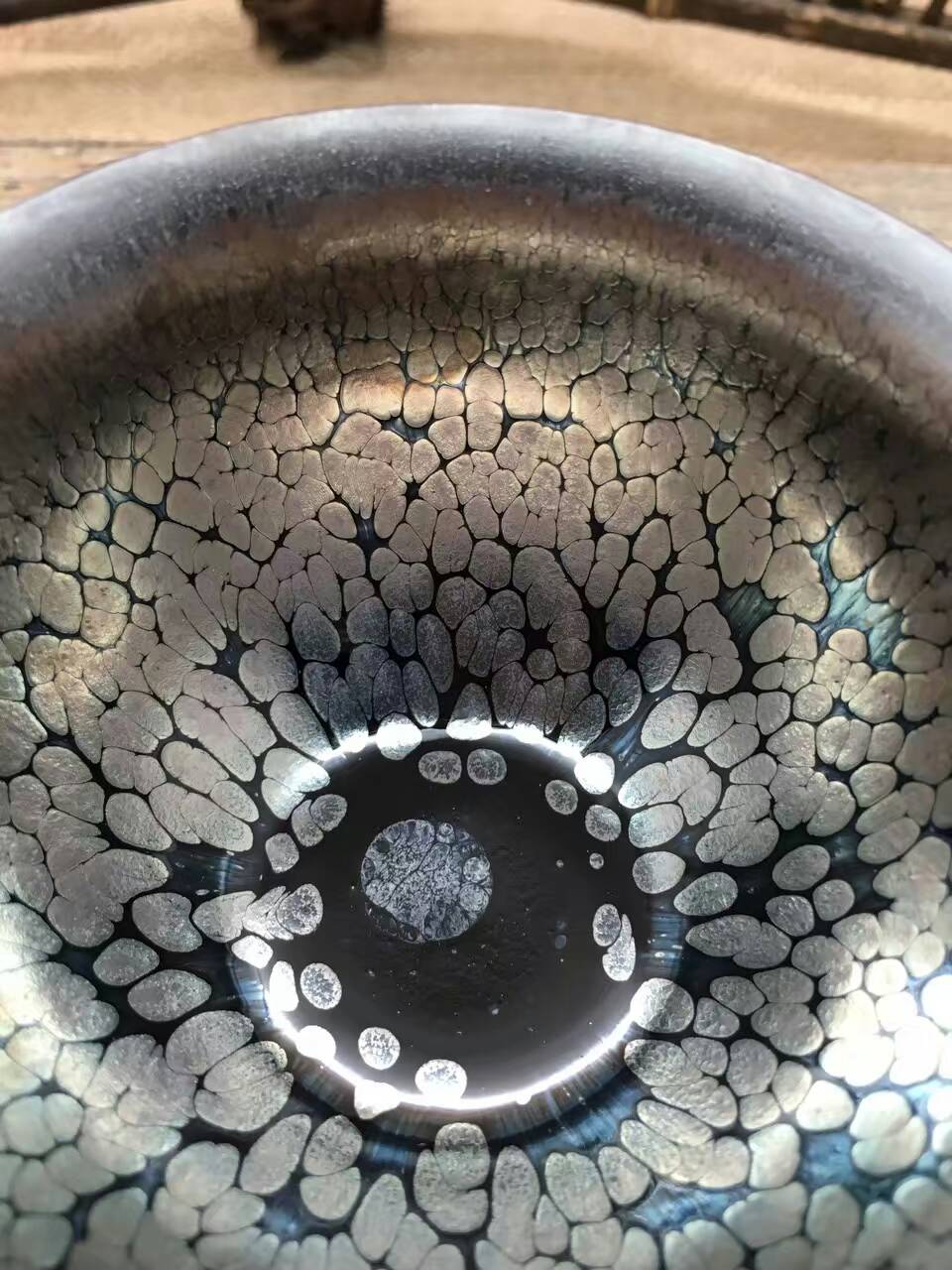 李光熙師傅精品孔雀開屏藍(lán)油滴盞口徑9.5肚大10高5.5cm