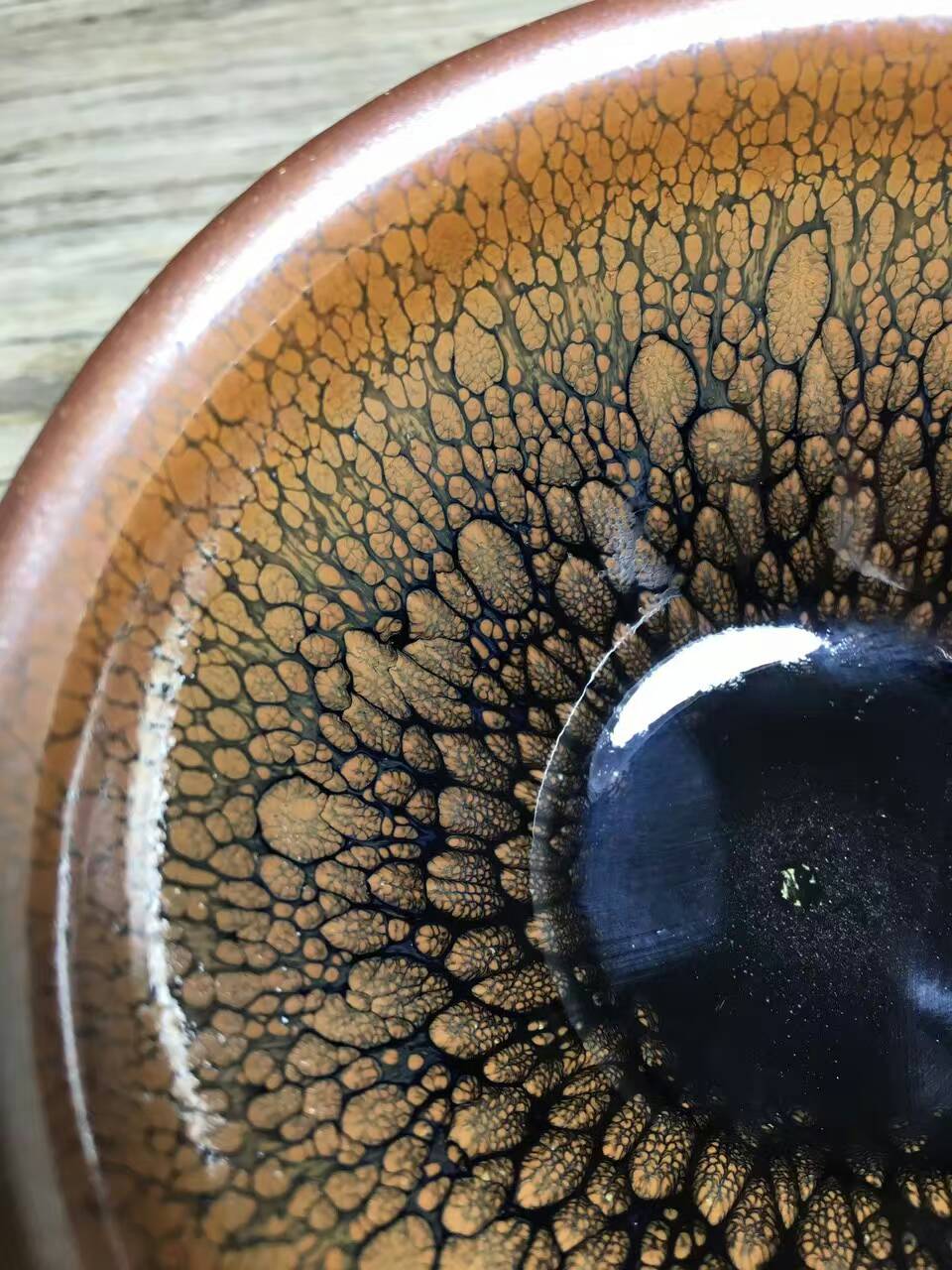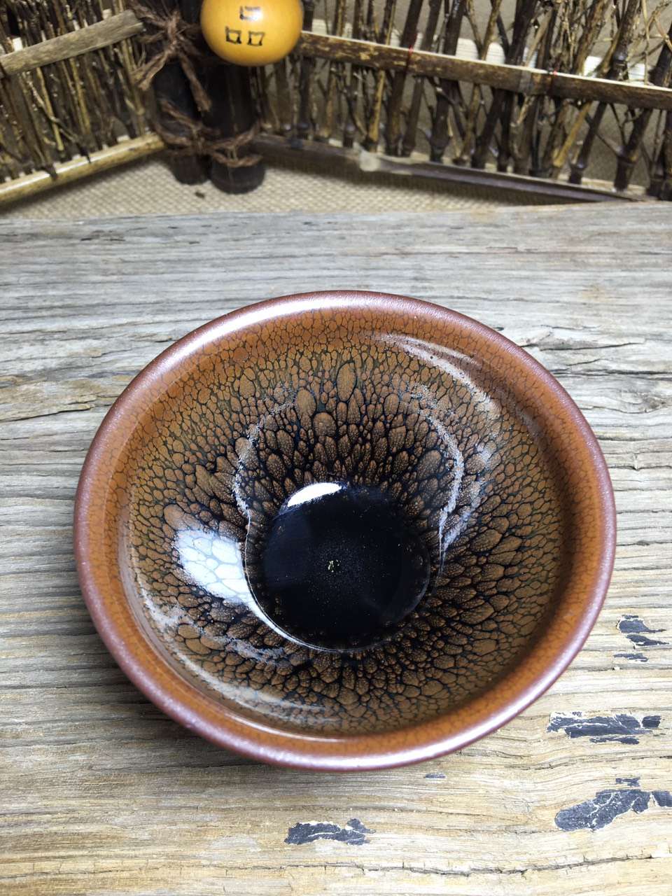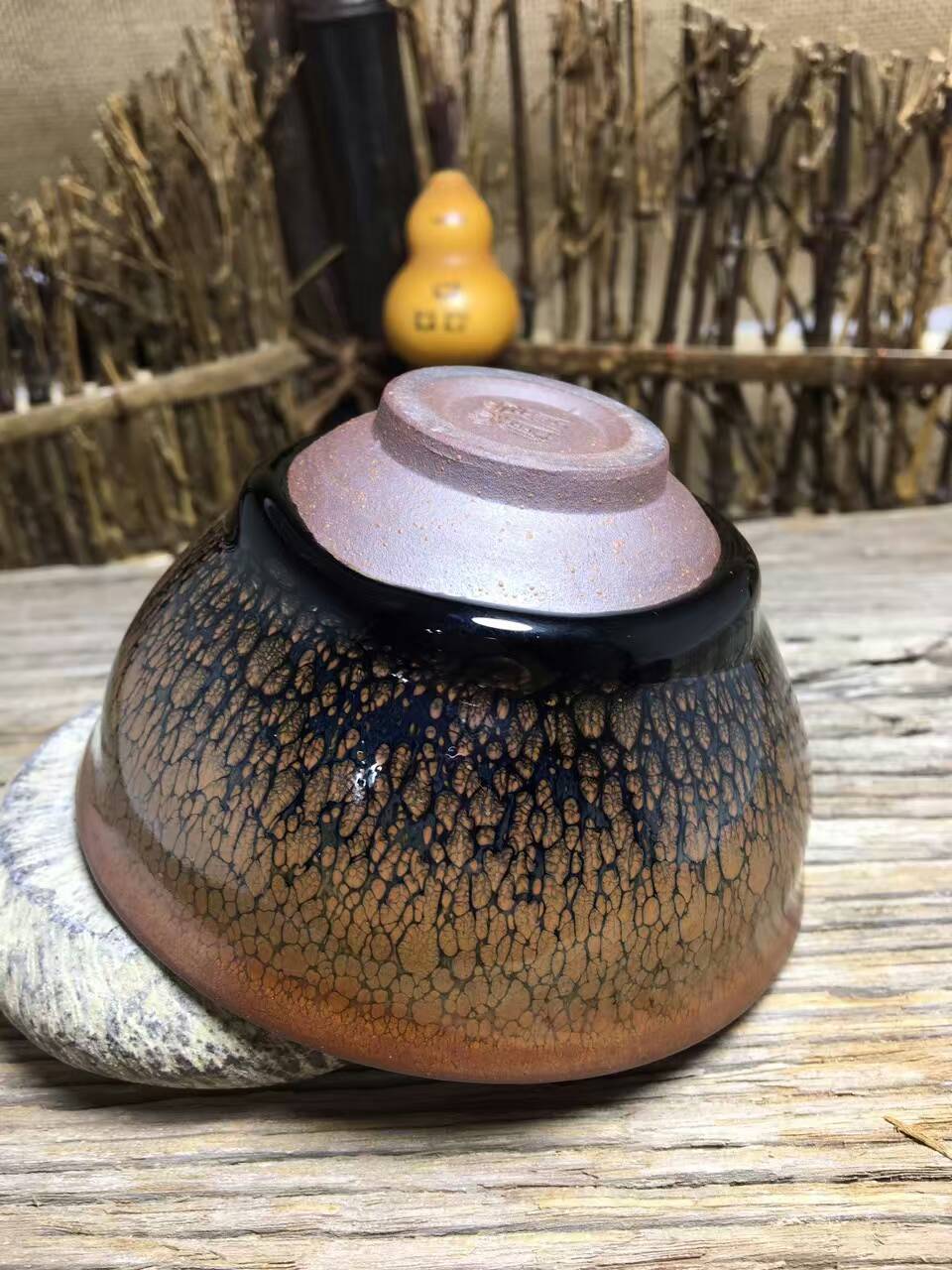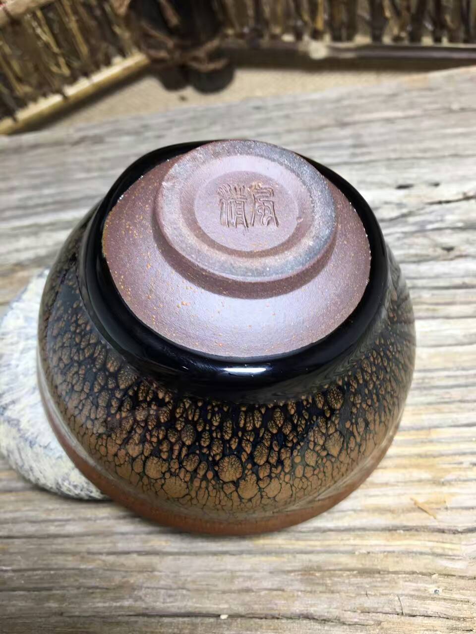 蔡炳盛大師精品油滴束口盞?;昝烙偷毋y亮口徑8.8高5.3cm