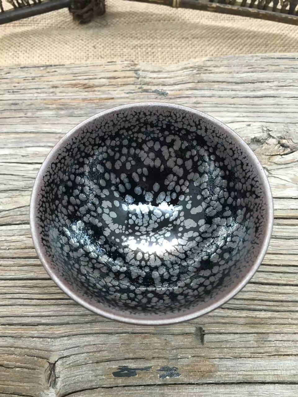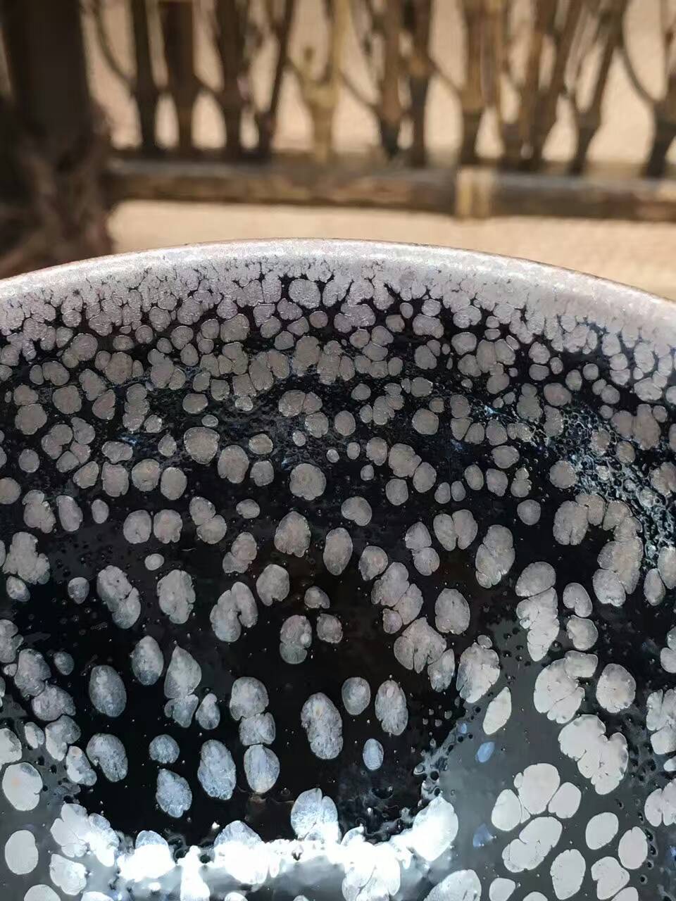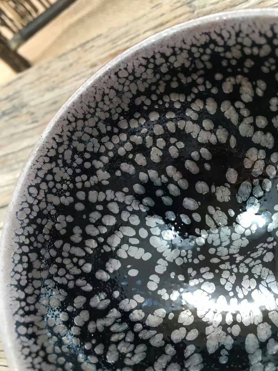 蔡炳盛大師精品油滴束口盞?;昝烙偷毋y亮口徑8.8高5.3cm