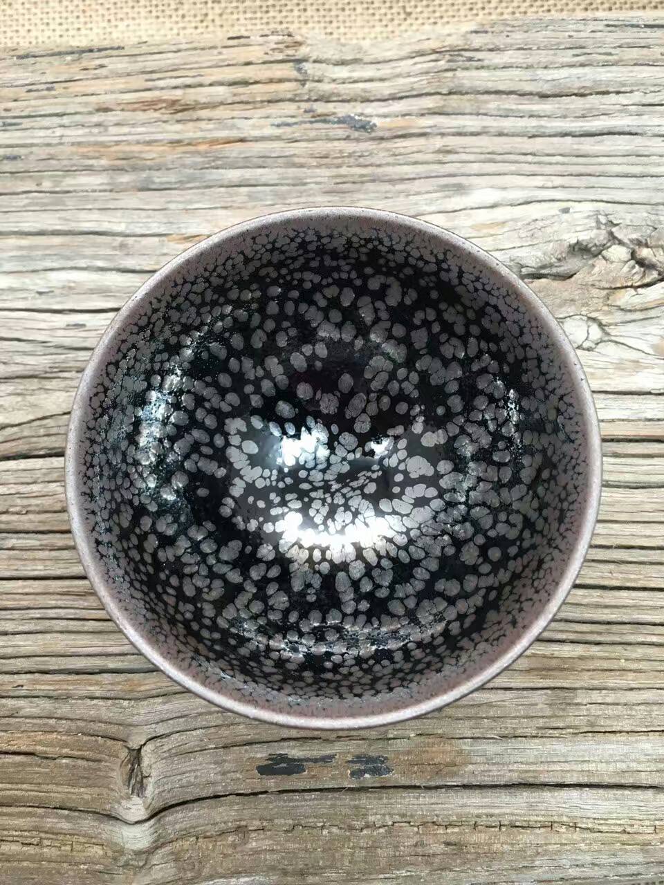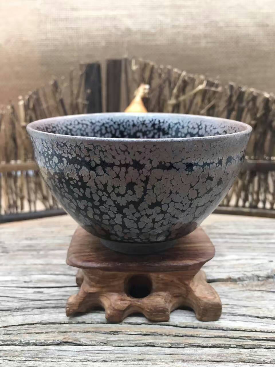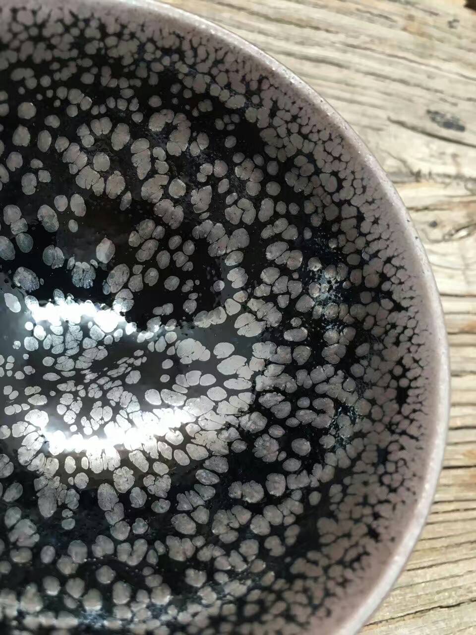 蔡炳盛大師精品油滴束口盞?;昝烙偷毋y亮口徑8.8高5.3cm