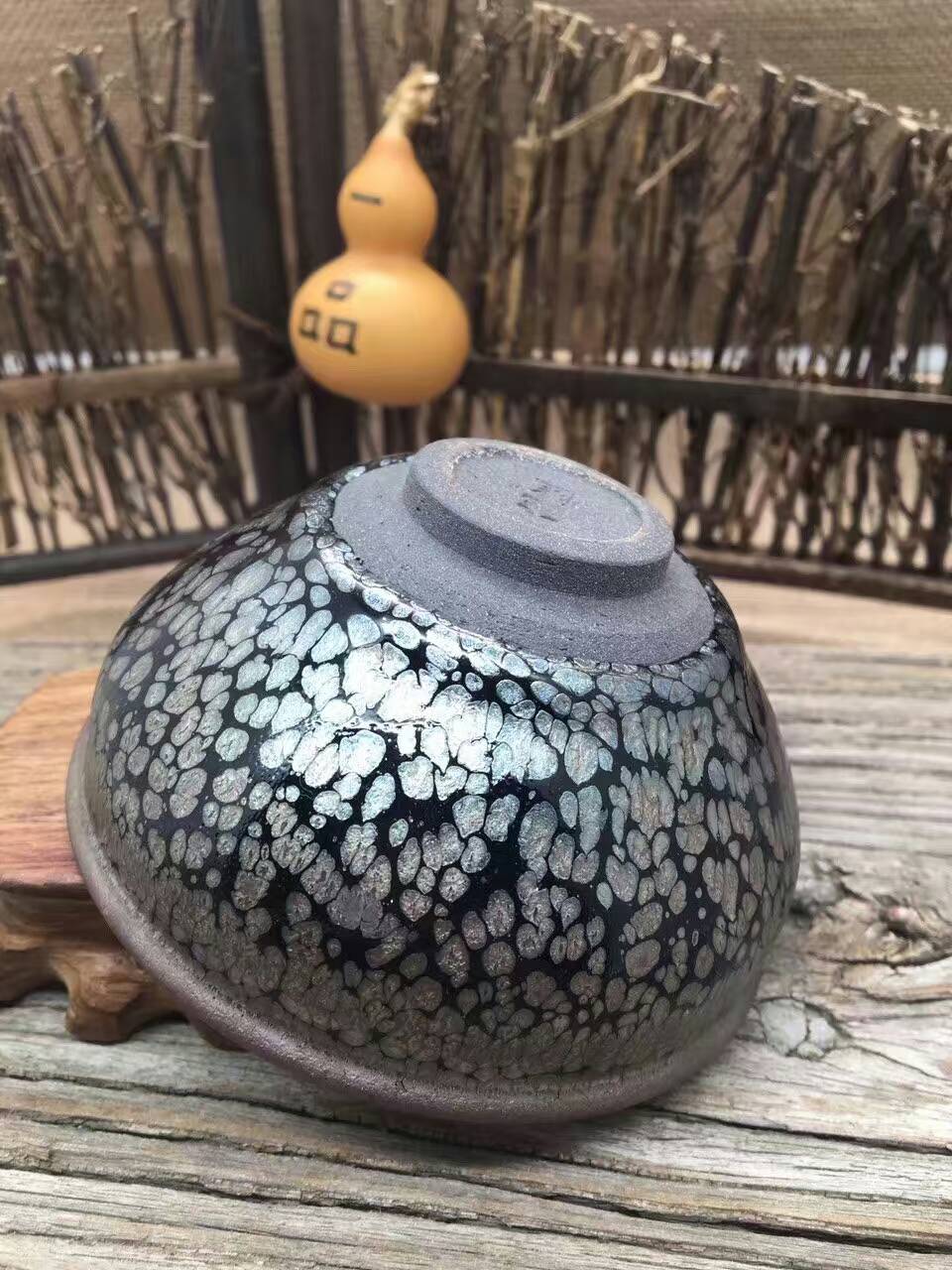 國(guó)家大師孫建興收藏級(jí)精品烏金回藍(lán)釉大盞早期大興字款精品口徑13.2高7